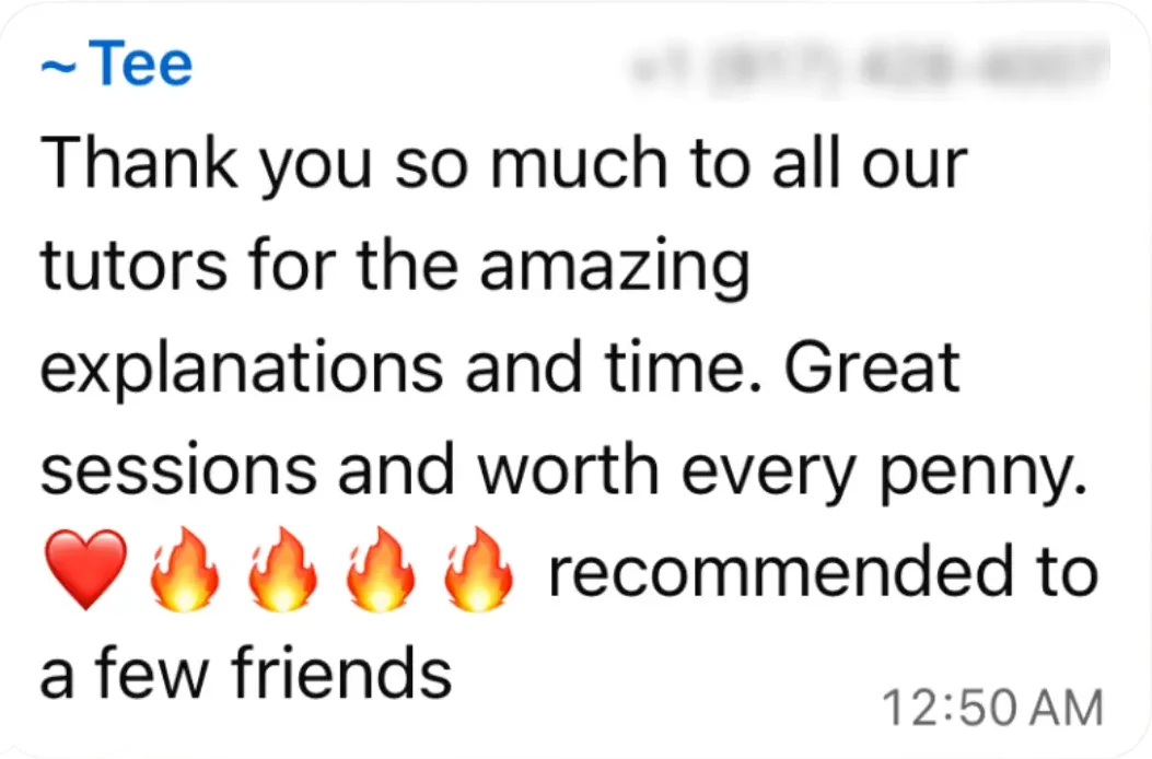 - Q&A after every topic. Tutors don’t leave until every question is answered.