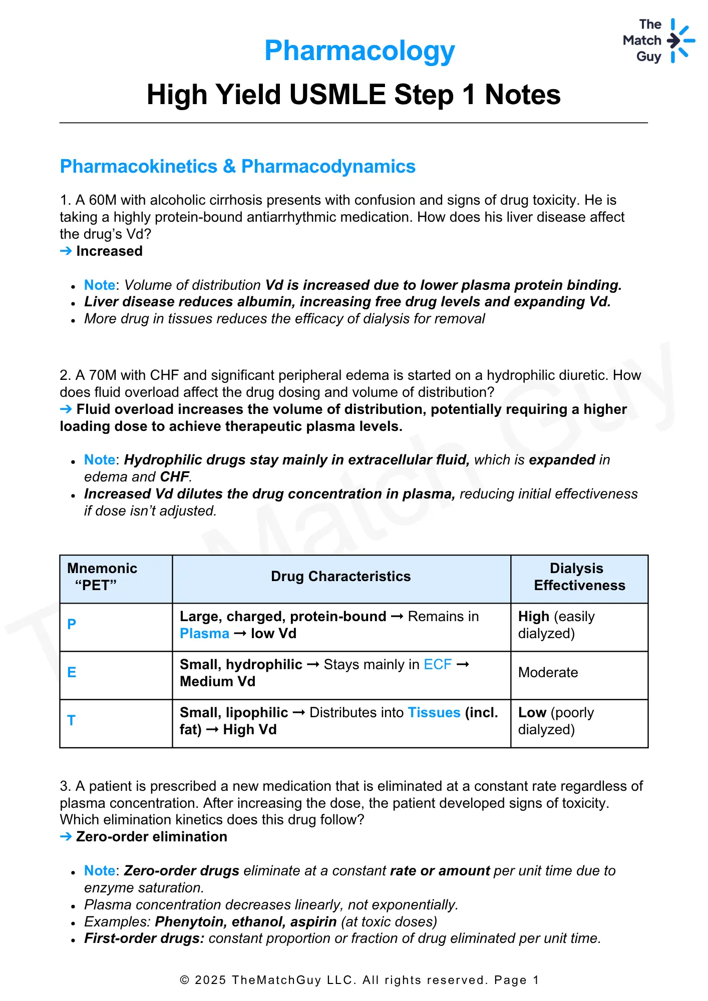 1. A 60M with alcoholic cirrhosis presents with confusion and signs of drug toxicity. He is taking a highly protein-bound antiarrhythmic medication. How does his liver disease affect the drug’s Vd?
