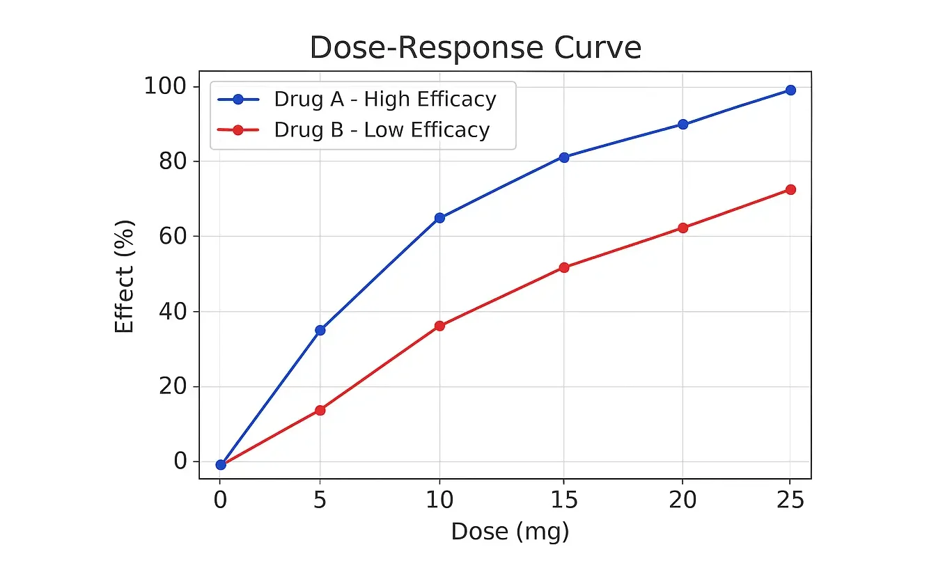 - Efficacy = maximum effect achievable, independent of potency.